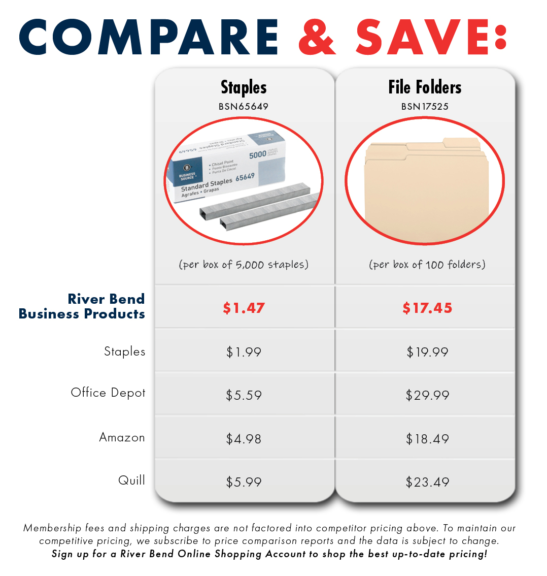 There’s a common misconception that only high-profile online sellers have the purchasing power needed to offer low prices for their customers. At River Bend Business Products, we challenge that. As proud members of the Independent Suppliers Group – an $8 billion co-op of more than 800 independent dealers – we’re able to offer pricing that competes with the largest suppliers. Combine this power with a membership to our Business Source Network loyalty perks program, and we deliver unmatched value on thousands of office essentials.